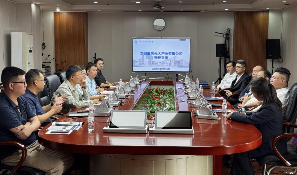 10月15日,重庆光大产业有限公司到校会在行政楼608会议室举行,会议由学校科研处副处长赵宇枫主持,继续教育与培训学院有关负责人及机械工程学院、车辆工程学院、电气工程学院、人工智能与大数据学院、电子与物联网工程学院等5个二级学院合作发展中心主任参加会议。